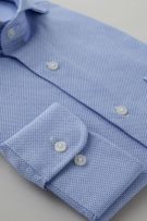 プレミアムコットン.を使用した希少性の高い春夏用シャツ生地=からみ織りを使用したホリゾンタルカラーシャツ