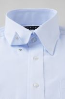 ネクタイを結んだ際のソフトな衿ロールがエレガントなスナップダウンシャツ。