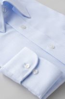 プレミアムコットン使用の綿100%に特殊な形態安定加工を施すことにより、ポリエステル混の形態安定シャツに近い防しわ性を実現しました