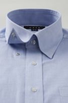 ネクタイを結んだ際のソフトな衿ロールがエレガントなスナップダウンシャツ。