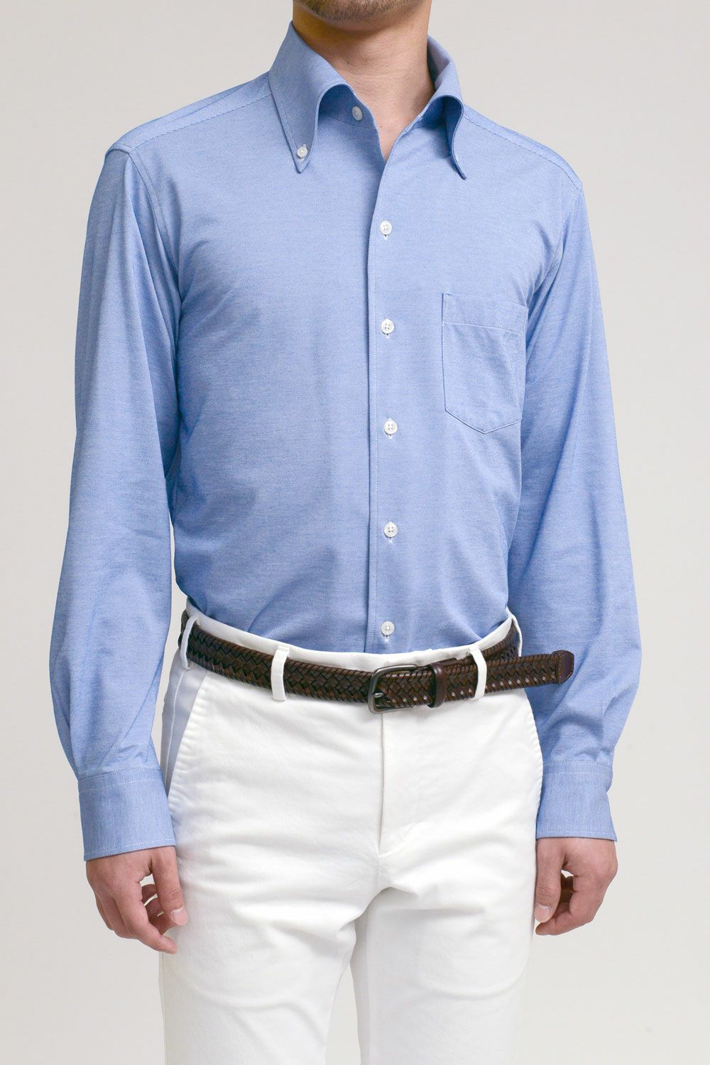 衿開きのきれいなノータイ専用オープンカラーのイタリアンカラー&ボタンダウン。