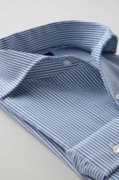この生地はウール100%と言わなければ、普通のシャツ生地との違いが全く分からない見栄えのサックス(水色)のロイヤルオックスフォード。