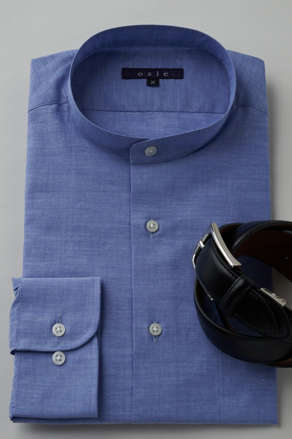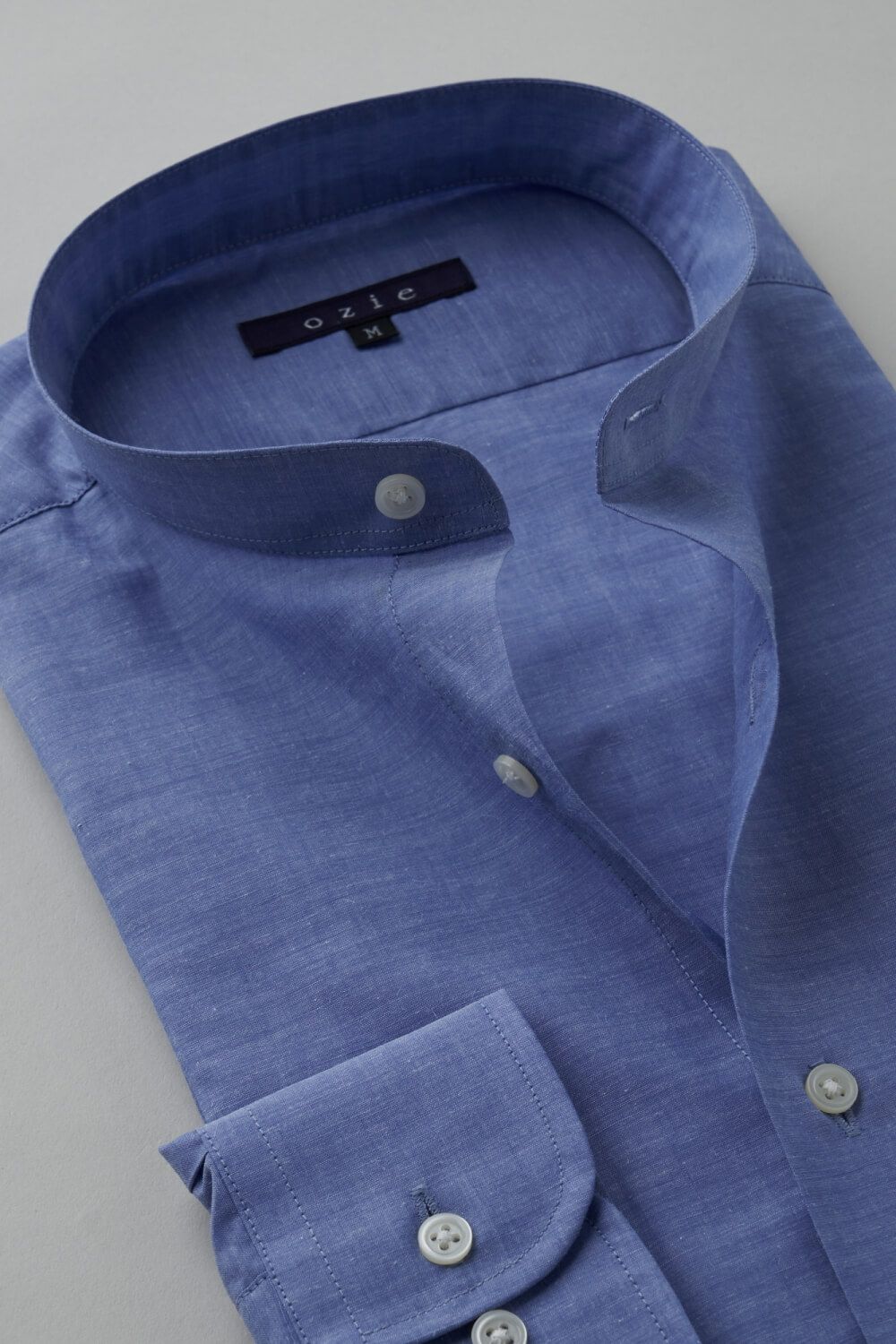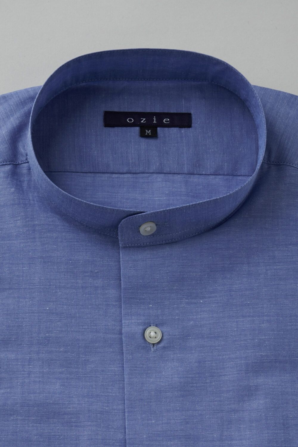 市場で減りつつある衿型で、希少性の高いスタンドカラーシャツ。