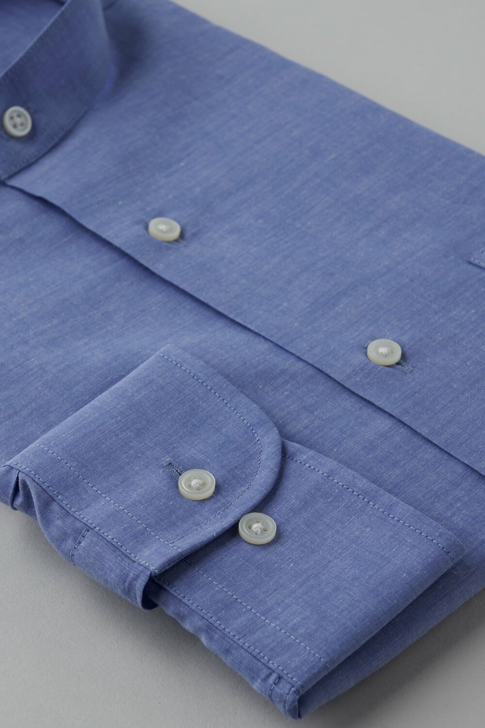 このシャツには若干の麻をブレンドしたブロード生地使用。