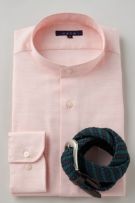 市場で減りつつある衿型で、希少性の高いスタンドカラーシャツ。