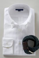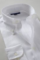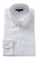 衿には衿立ち・衿開きのよいロールの美しい、大きからず小さからずの使い勝手のよいボタンダウン型を採用しました。