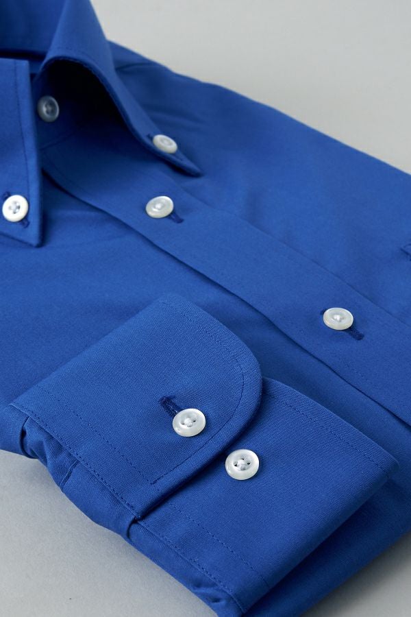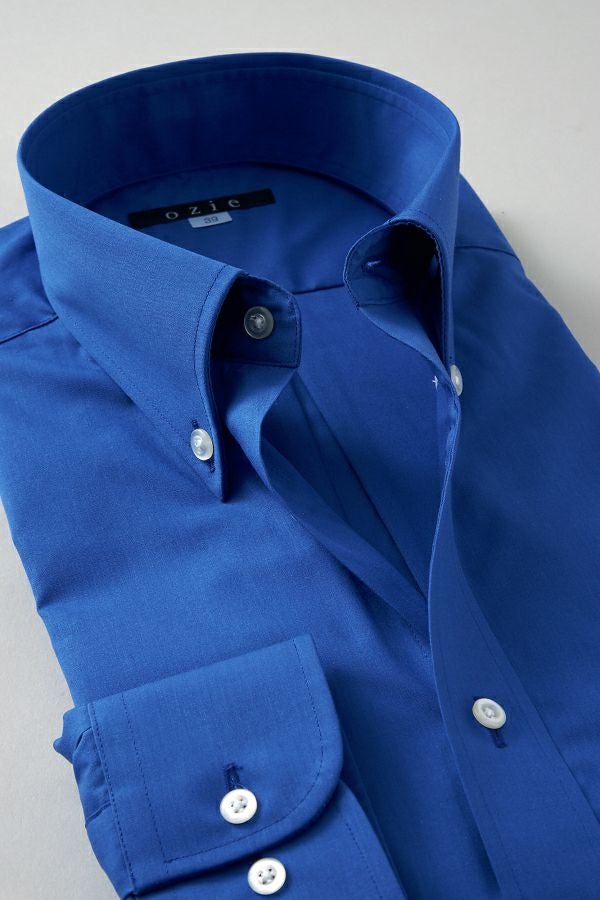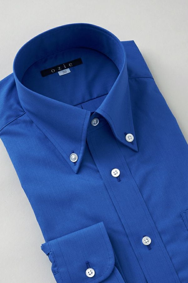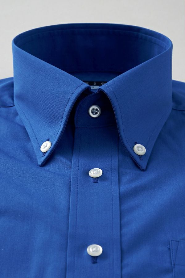 衿には衿立ち・衿開きのよいロールの美しい、大きからず小さからずの使い勝手のよいボタンダウン型を採用しました。