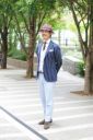 ネクタイをする場合は、素材感がおなじニットタイがおすすめです。