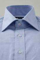 そこでプレミアムコットン使用の綿100%に特殊な形態安定加工を施すことにより、綿特有の光沢感や素材感を消すことなく、ポリエステル混の形態安定シャツに近い防しわ性があります。
