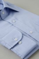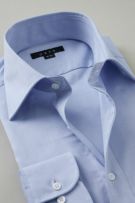 オックスフォードより薄手、ブロードより厚手と透け感が少ないしっかりとした印象と上品さを併せ持ったドレッシーな生地を使用しました。