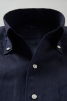 リネンシャツといえどもドレスシャツ(ワイシャツ)の仕様で生産しているため、衿元しっかり!