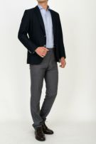 イタリアンカラーと広角なワイドカラーを掛け合わせたスタイリッシュなノーネクタイ専用の衿型です。