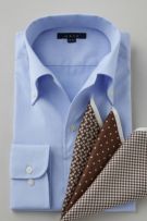 ノーネクタイ専用のややカジュアル度の高い商品でありながら、非常にエレガントなシャツです。