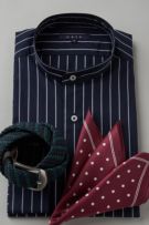 カジュアルのみならずジャケットスタイルにも最適なスタンドカラーシャツ
