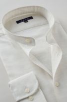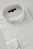 カジュアルのみならずジャケットスタイルにも最適なスタンドカラーシャツ