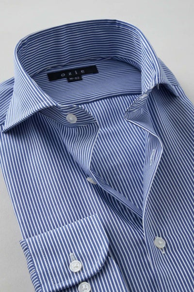 結果、光沢感・ソフト感にあふれ着心地のいい、さらに洗濯後のお手入れが楽といった、相反する事象を併せ持った、ozieの別注生地ならではの上質シャツに仕上がりました。
