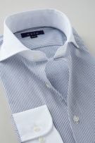 結果、光沢感・ソフト感にあふれ着心地のいい、その上洗濯後のお手入れが楽といった、相反する事象を併せ持った上質シャツに仕上がりました。