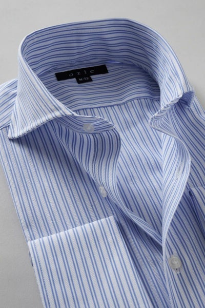 【メンズ・ドレスシャツ・ワイシャツ】ナチュラルフィット・ダブルカフス・プレミアムコットン・からみ織り・ホリゾンタルカラー・カッタウェイ