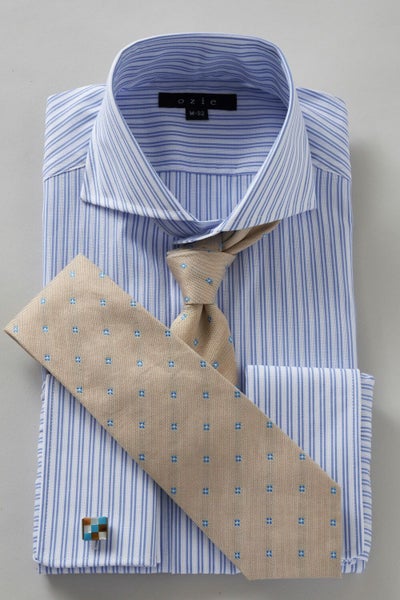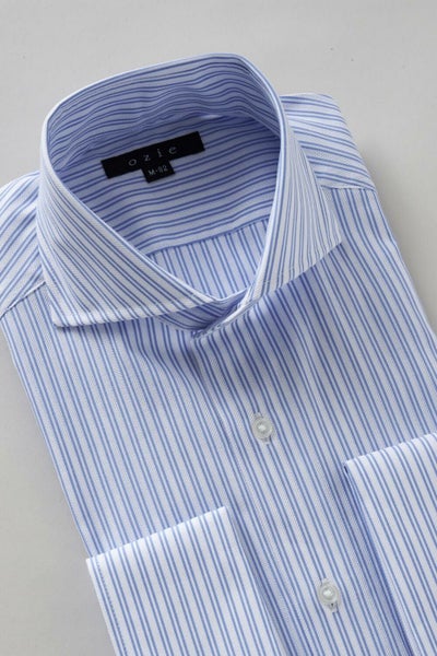 そこでozieではネクタイとの相性がいいホリゾンタルカラーをダブルカフス仕様にして生産。