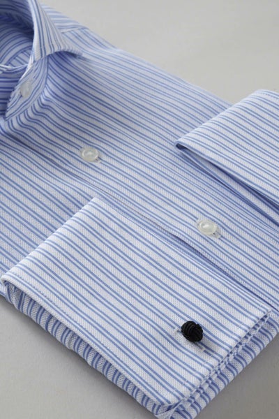 からみ織りを使用したホリゾンタルカラーのダブルカフスシャツ