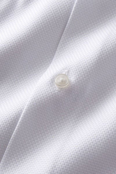 プレミアムコットン使用の綿100%に特殊な形態安定加工を施すことにより、ポリエステル混の形態安定シャツに近い防しわ性があります。