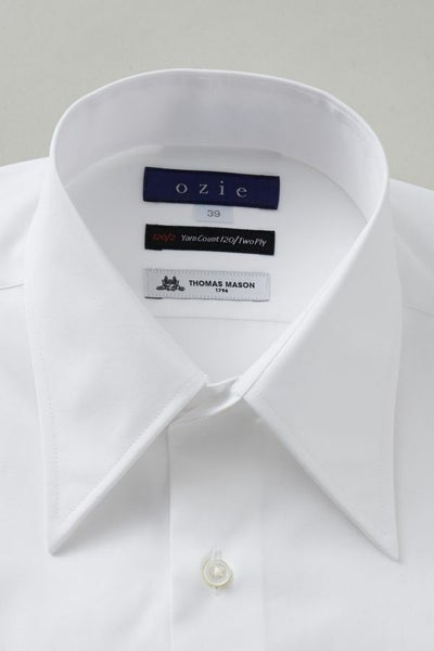 ozie│オジエではおなじみのプレミアムコットン=スーピマ綿の120番手双糸を使ってトーマスメイソン社が生産したワイシャツの定番生地=ブロード。