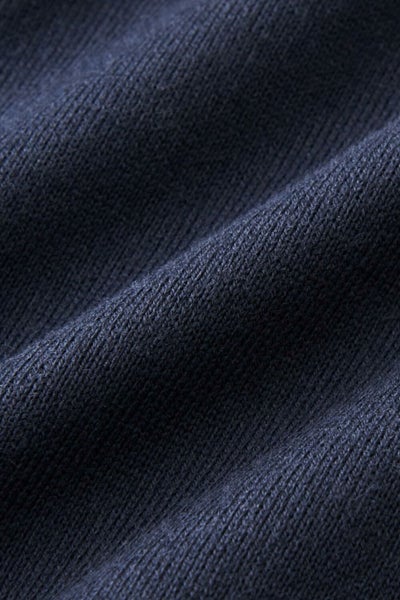 最初のご試着時はヨレが取れませんが、数回着用・洗濯することでリブの目が詰まり、高さが落ち着いてきて写真のように解消されます。