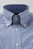 衿には衿立ち・衿開きのよいロールの美しい、大きからず小さからずの使い勝手のよいボタンダウン型を採用しました。