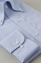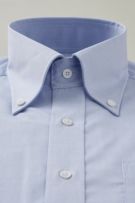衿には衿立ち・衿開きのよいロールの美しい、大きからず小さからずの使い勝手のよいボタンダウン型を採用しました。