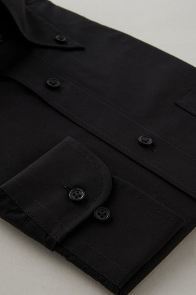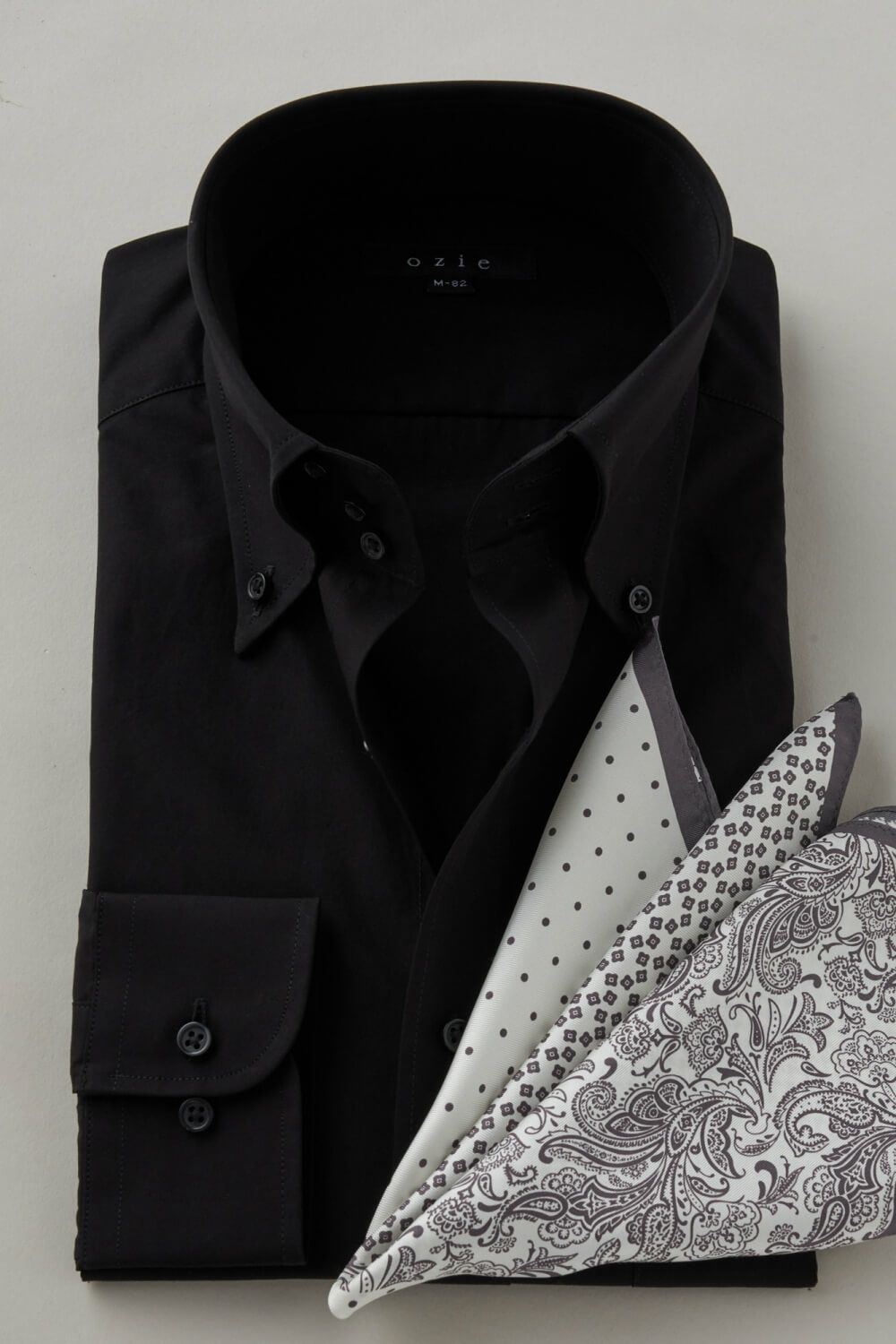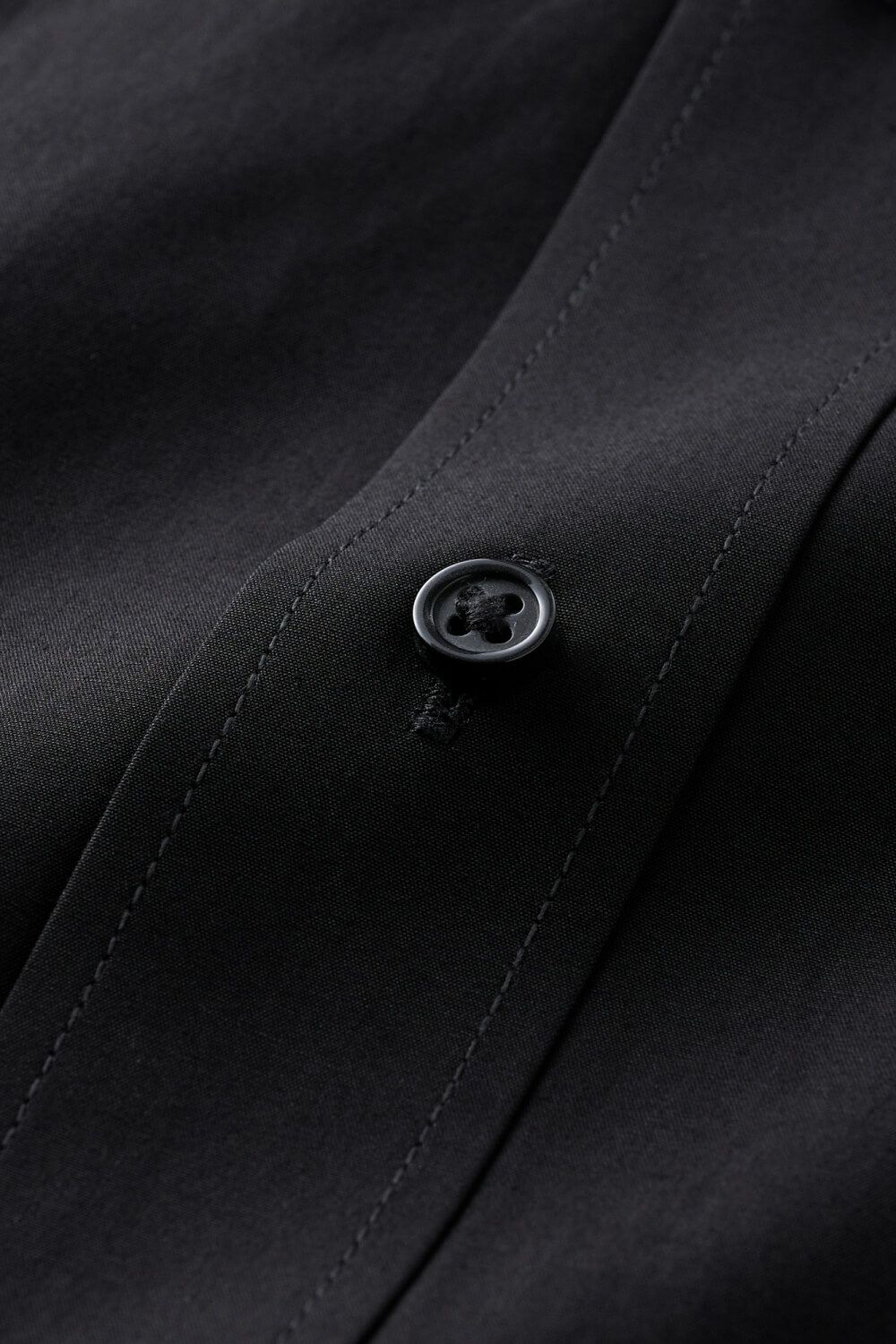 シャツでインパクトやアクセントをつけたいときにこれ以上ないノーネクタイ専用のアバンギャルドなモード系シャツ。