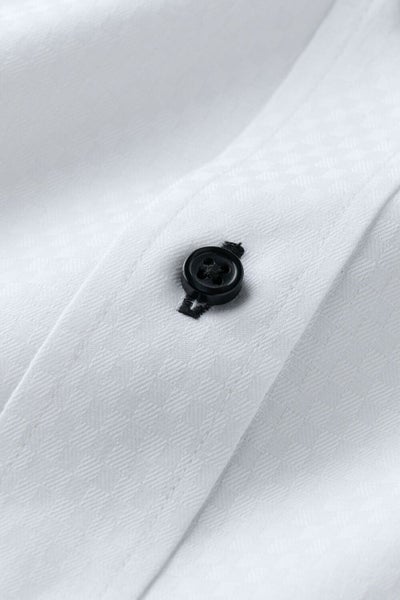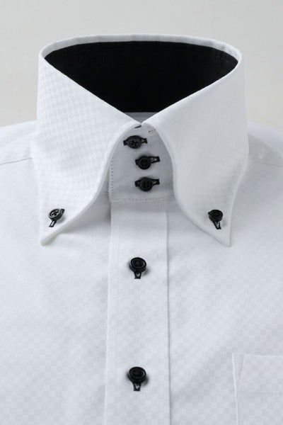 シャツでインパクトやアクセントをつけたいときにこれ以上ないノーネクタイ専用のアバンギャルドなモード系シャツ。