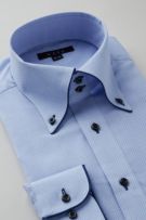 見栄え・着心地抜群+お手入れ楽々+環境に優しいエコ素材使用!?衿・カフスにサテンテープパイピングのドゥエボットーニBDシャツ