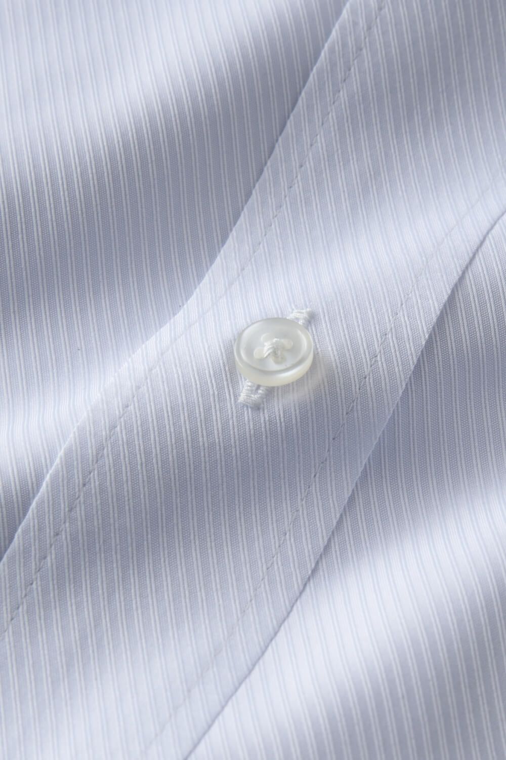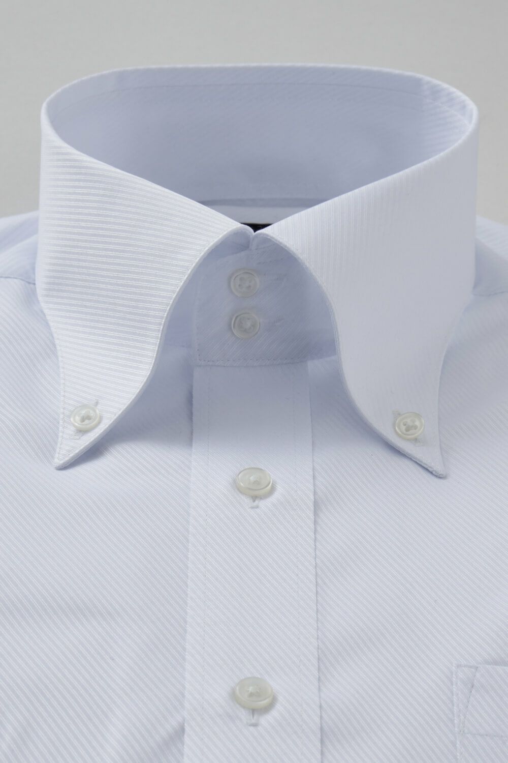 一番上のボタンを2つ縦につけることにより衿が高く、やや大きめな衿型となっています。