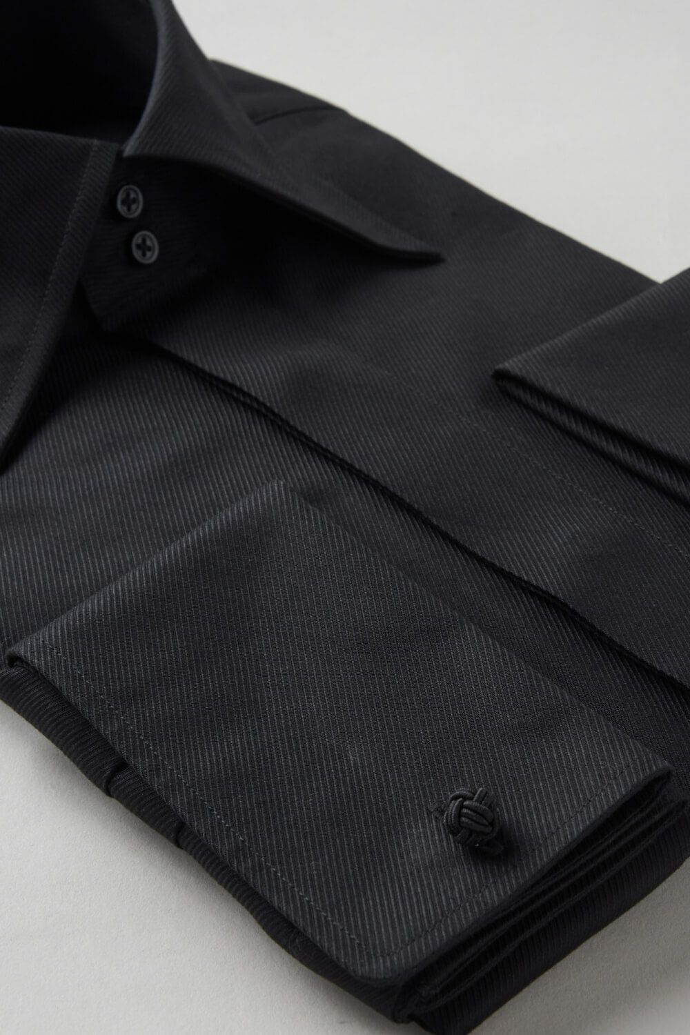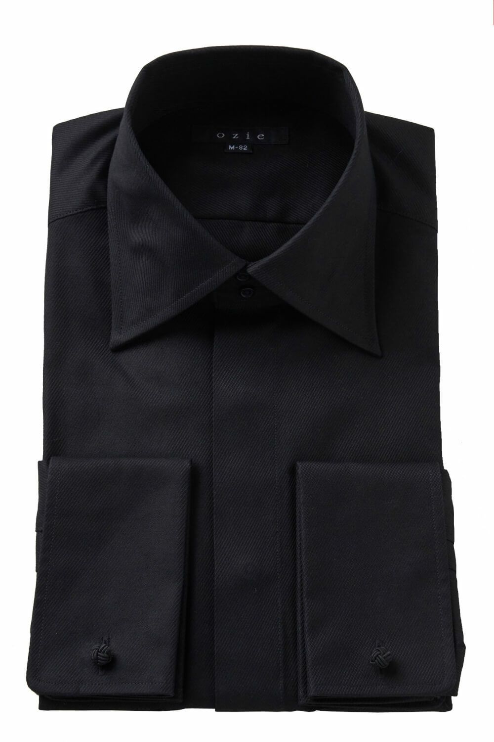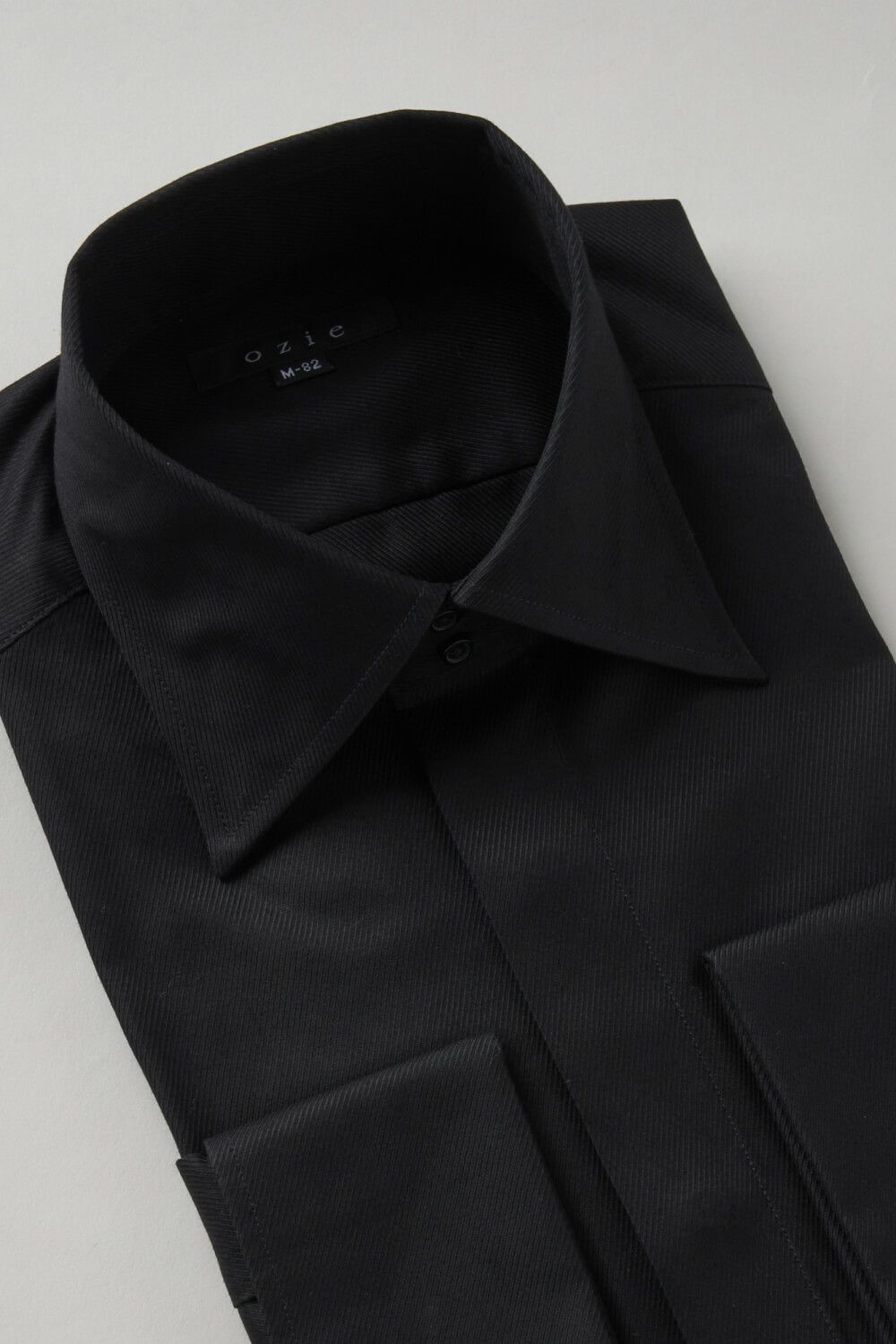 上質麺100%使用のスタイリッシュかつアバンギャルドな黒無地シャツ