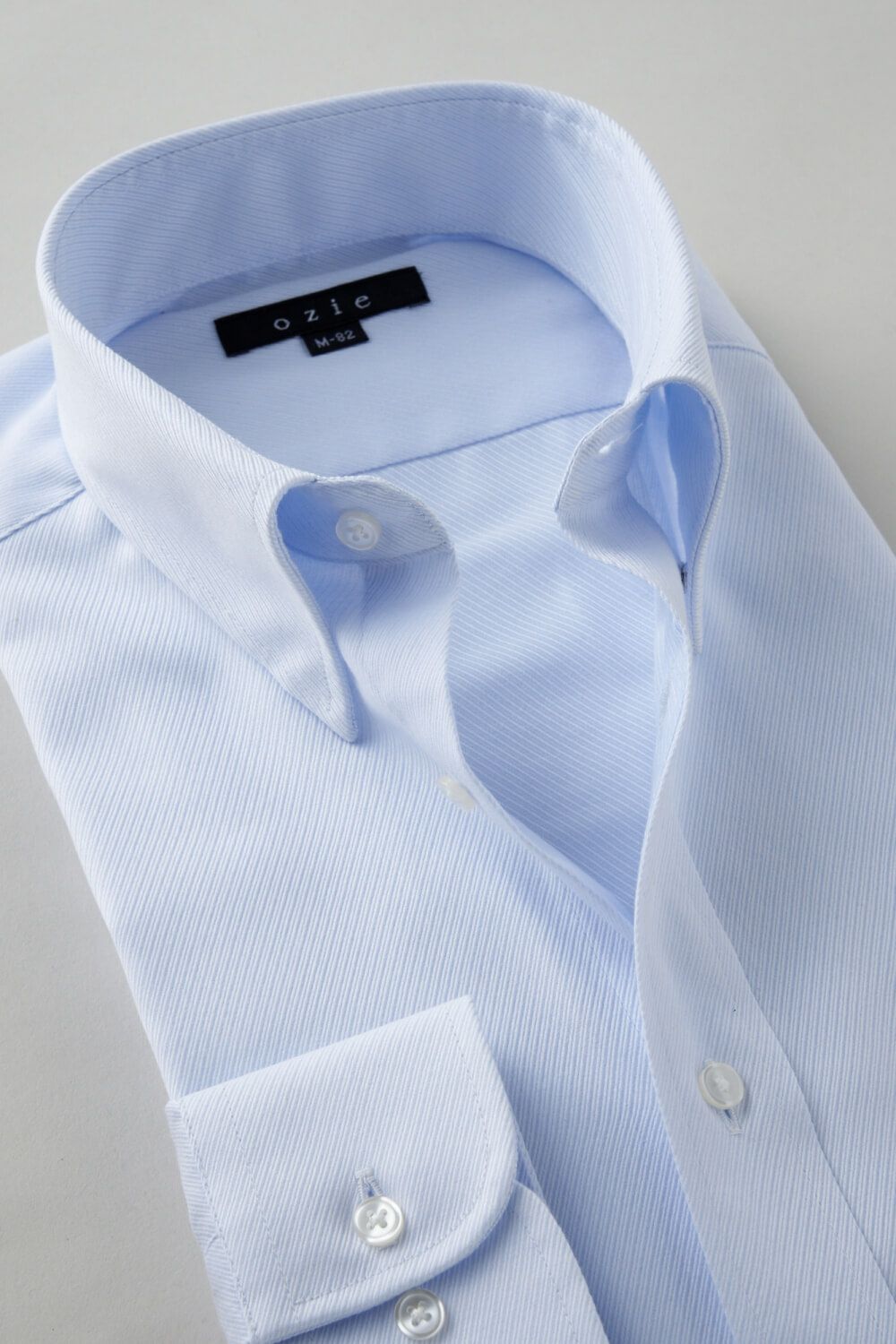 ネクタイを結んだ際のソフトな衿ロールがエレガントなスナップダウンシャツ。
