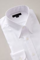 ネクタイを結んだ際のソフトな衿ロールがエレガントなスナップダウンシャツ。