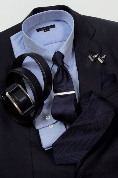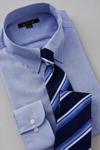 タイドアップ用のブルーシャツで差をつけるにはこれしかないといっても過言ではない、高感度なシャツです。