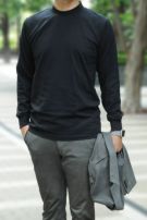 ozieオリジナルの適度な肉厚の40番手度詰め天竺を使ったしっとりとした肌触りと光沢感のあるこのTシャツは、スーツ・ジャケットにあわせるのに最適な上品長袖Tシャツです。