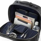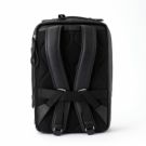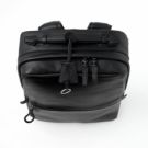 背面ベルトにストラップ部分を収納し、横持ち使用することで、よりビジネスライクにも使用可能。