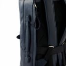 背面ベルトにストラップ部分を収納し、横持ち使用することで、よりビジネスライクにも使用可能。