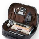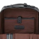鞄の内側には、クッション付きPCポケット、ペン差しポケット、ファスナーポケット、更にイヤホンや充電器などのコードを巻きつけるコードリールを配置。