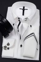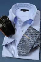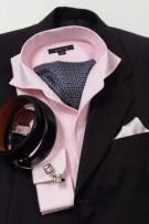 (真ん中、3つ目の穴で留めるとバランスよいきれいな着こなしになります。)