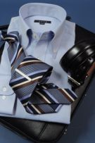 (真ん中、3つ目の穴で留めるとバランスよいきれいな着こなしになります。)
