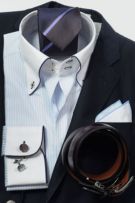 (真ん中、3つ目の穴で留めるとバランスよいきれいな着こなしになります。)