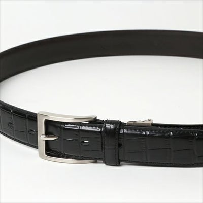 【ベルト】クロコダイル型押し・牛革・ブラック・日本製
