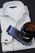 (真ん中、3つ目の穴で留めるとバランスよいきれいな着こなしになります。)