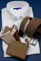引き締めカラーのブラウンがコーディネートのまとめ役に。