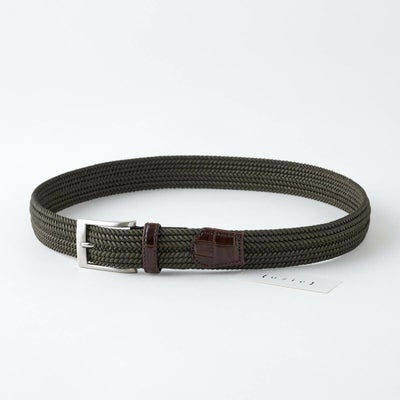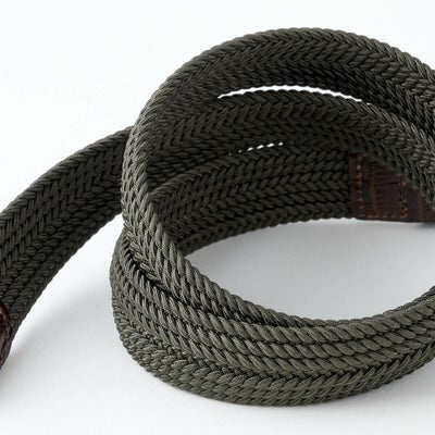エラスティック(伸縮素材)使用で縦の伸縮性に富み、使うほどに味わい深く柔らかで体に馴染みやすいメッシュベルト。