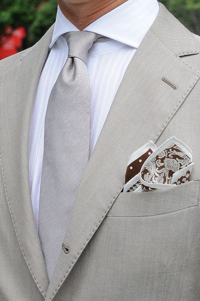 【ポケットチーフ】シルク100%・サテン・ブラウン・4柄プリント・日本製