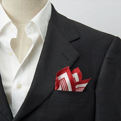シルク100%日本製ポケットチーフ!千鳥格子柄がシャレ感あふれる!ビジネスからカジュアルまで胸元にアクセントをつけてワンランク上の着こなしをお楽しみください。レッド 赤